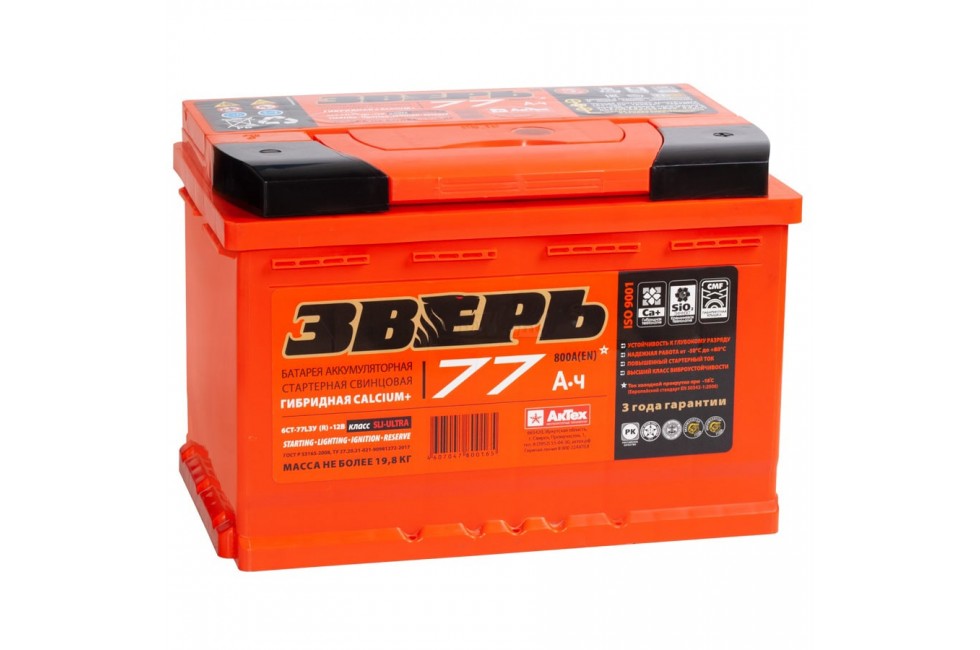 Аккумулятор Зверь 77 A/h 800A R+