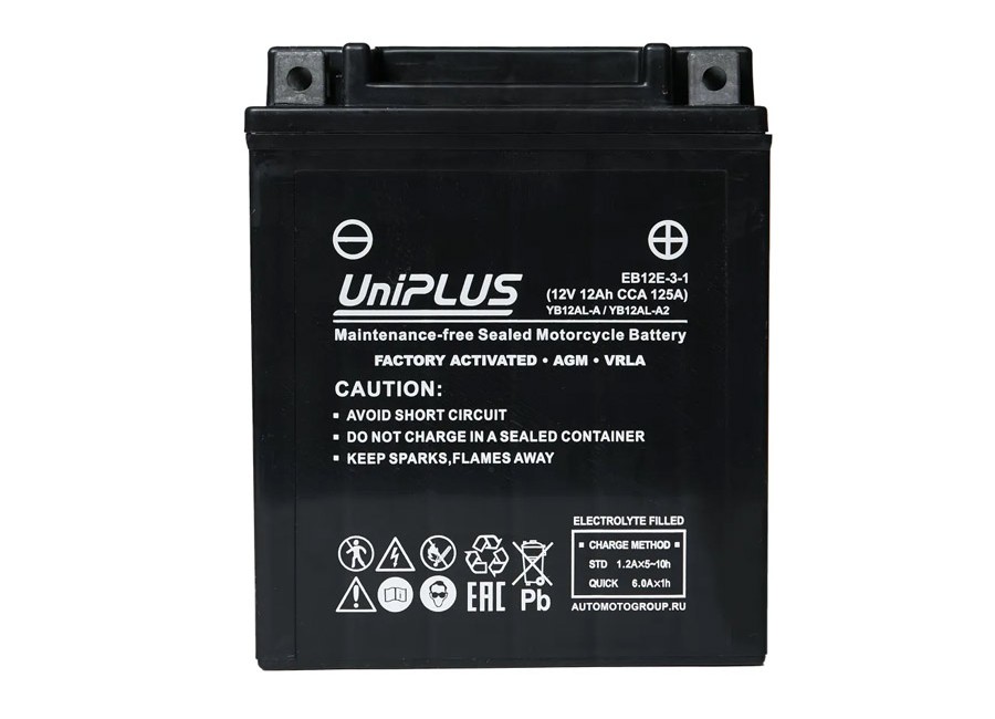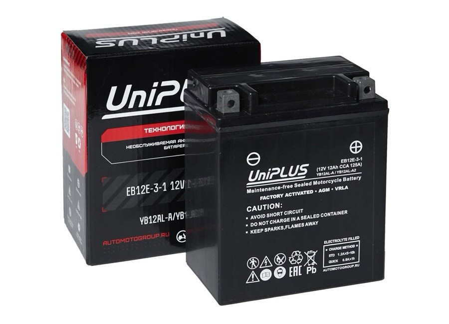Аккумулятор 12v UniPLUS AGM – надежный источник энергии для вашей техники! Аккумулятор для мотоцикла 12в изготовлен по технологии AGM – современной необслуживаемой технологии с абсорбированным электролитом в сепараторе из стекловолокна.